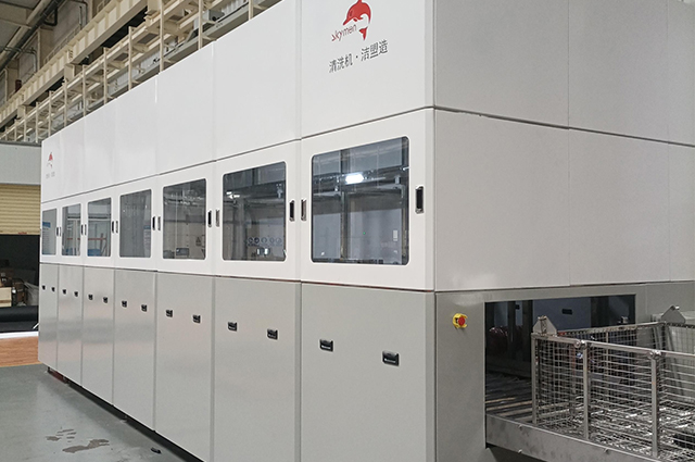 潔盟JTM-5160SD是一款用于清洗軌道機(jī)車(chē)轉(zhuǎn)向架零部件而研發(fā)設(shè)計(jì)的全自動(dòng)超聲波清洗設(shè)備。由超聲波清洗、鼓泡漂洗、熱風(fēng)干燥等工藝組成,通過(guò)龍門(mén)單臂機(jī)械手將裝有工件的清洗籃依次送至個(gè)工序槽體內(nèi)及上下料臺(tái),采用PLC+人機(jī)界面控制,實(shí)現(xiàn)全流程自動(dòng)清洗。